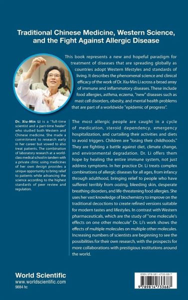 This book represents a new and hopeful paradigm for treatment of diseases that are spreading globally as countries adopt Western lifestyles and standards of living. It describes the phenomenal science and clinical efficacy of the work of Dr Xiu-Min Li across a broad array of immune and inflammatory diseases. These include food allergies, asthma, eczema, "new" diseases such as mast cell disorders, obesity, and mental health problems that are part of a worldwide "epidemic of progress". The most allergic people are caught in a cycle of medication, steroid dependency, emergency hospitalization, and curtailing their activities and diets to avoid triggers. Children are "losing their childhoods." They are fighting a battle against diet, climate change, and environmental degradation. Dr Li offers them hope by healing the entire immune system, not just address symptoms. In her practice Dr Li treats complex combinations of allergic diseases for all ages, from infancy through adulthood, bringing relief to people who have suffered terribly from oozing, bleeding skin, desperate breathing disorders, and life-threatening food allergies. She uses her vast knowledge of biochemistry to improve on the traditional decoctions to create refined versions suitable for modern tastes and lifestyles. In contrast with Western pharmaceuticals, which are the study of "one molecule's effects on one other molecule" Dr Li's work shows the effects of multiple molecules on multiple other molecules. Increasing numbers of scientists are beginning to see the possibilities for their own research, with the prospects for more collaborations with prestigious institutions around the world.