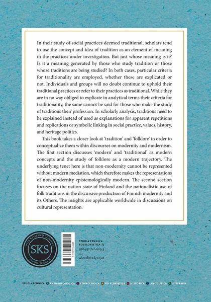 In their study of social practices deemed traditional, scholars tend to use the concept and idea of tradition as an element of meaning in the practices under investigation. But just whose meaning is it? Is it a meaning generated by those who study tradition or those whose traditions are being studied? In both cases, particular criteria for traditionality are employed, whether these are explicated or not. Individuals and groups will no doubt continue to uphold their traditional practices or refer to their practices as traditional. While they are in no way obliged to explicate in analytical terms their criteria for traditionality, the same cannot be said for those who make the study of traditions their profession. In scholarly analysis, traditions need to be explained instead of used as explanations for apparent repetitions and replications or symbolic linking in social practice, values, history, and heritage politics. This book takes a closer look at 'tradition' and 'folklore' in order to conceptualize them within discourses on modernity and modernism. The first section discusses 'modern' and 'traditional' as modern concepts and the study of folklore as a modern trajectory. The underlying tenet here is that non-modernity cannot be represented without modern mediation, which therefore makes the representations of non-modernity epistemologically modern. The second section focuses on the nation-state of Finland and the nationalistic use of folk traditions in the discursive production of Finnish modernity and its Others. The insights are applicable worldwide in discussions on cultural representation.
