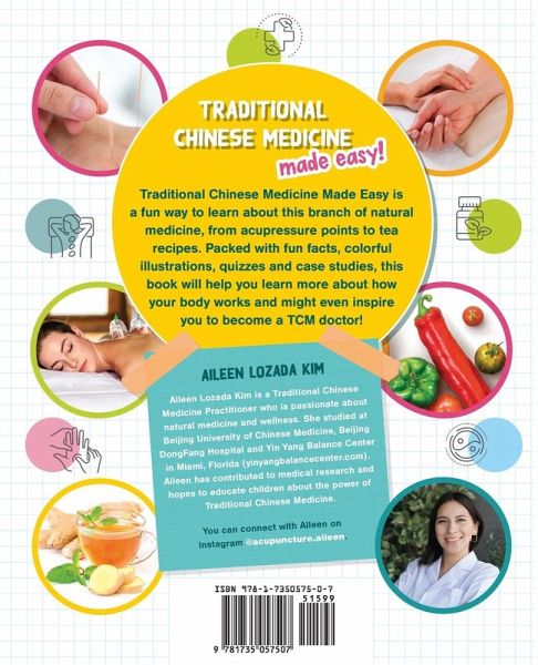 The first acupuncture and herbal medicine guide book exclusively made easy for young readers to understand. Packed with fun facts, colorful illustrations, quizzes, and simple case studies. Traditional Chinese Medicine is usually difficult for beginners to understand, but finally Traditional Chinese Medicine Made Easy! is a book that simplifies TCM theories, useful acupressure points, food therapy, and tea recipes.This is a great book for children who want to learn more about the body or even adults who wish to understand the basics of Traditional Chinese Medicine and want to take care of their own bodies. This is a useful book to keep in the reception area of an acupuncture clinic, allowing kids and adults to get a basic understanding of TCM while waiting. The author, Aileen Lozada Kim (Traditional Chinese Medicine Practitioner), turned this complicated subject into a fun and cute beginner's guide. Traditional Chinese Medicine Made Easy! will help you learn more about how your body works and might even inspire you to become a TCM doctor! This is a great health book to add to your bookshelf.