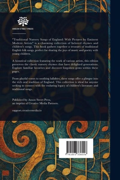 "Traditional Nursery Songs of England: With Pictures by Eminent Modern Artists" is a charming collection of beloved rhymes and children's songs. This book gathers together a treasury of traditional English folk songs, perfect for sharing the joys of music and poetry with young children. A historical collection featuring the work of various artists, this edition preserves the classic nursery rhymes that have delighted generations. Explore familiar favorites and discover forgotten gems within these pages. From playful verses to soothing lullabies, these songs offer a glimpse into the rich oral tradition of England. This collection is ideal for anyone seeking to connect with the enduring legacy of children's literature and traditional songs. This work has been selected by scholars as being culturally important, and is part of the knowledge base of civilization as we know it. This work is in the public domain in the United States of America, and possibly other nations. Within the United States, you may freely copy and distribute this work, as no entity (individual or corporate) has a copyright on the body of the work. Scholars believe, and we concur, that this work is important enough to be preserved, reproduced, and made generally available to the public. We appreciate your support of the preservation process, and thank you for being an important part of keeping this knowledge alive and relevant.