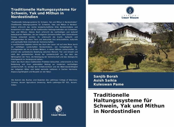 "Traditionelle Haltungssysteme für Schwein, Yak und Mithun in Nordostindien" (Traditionelle Haltungssysteme für Schweine, Yaks und Mithun in Nordost-Indien) erforscht das reiche landwirtschaftliche Erbe Nordost-Indiens und konzentriert sich dabei auf die traditionellen Haltungsmethoden von Schweinen, Yaks und Mithuns. Dieses Buch erforscht die nachhaltigen und kulturell bedeutsamen Methoden, die von indigenen Gemeinschaften über Generationen hinweg entwickelt wurden. Es untersucht die Zucht-, Aufzucht- und Pflegetechniken für diese Tiere und beleuchtet ihre wirtschaftliche, kulturelle und spirituelle Rolle innerhalb der Gemeinschaften.In ausführlichen Kapiteln nimmt das Buch den Leser mit auf eine Reise durch die vielfältigen Landschaften Nordostindiens, von hochgelegenen Yak-Zuchtgebieten bis hin zu dichten Wäldern, in denen Mithuns umherstreifen. Es erörtert die symbiotische Beziehung zwischen Mensch, Tier und Umwelt und stellt den ganzheitlichen Ansatz der Landwirtschaft vor, bei dem das Wohlergehen der Tiere, die Beteiligung der Gemeinschaft und das ökologische Gleichgewicht im Vordergrund stehen.Indem das Buch diese traditionellen Praktiken beleuchtet, unterstreicht es ihre Bedeutung und ihren potenziellen Beitrag zur modernen nachhaltigen Landwirtschaft. Es würdigt den Einfallsreichtum und die Widerstandsfähigkeit der indigenen Völker und bietet wertvolle Lektionen in Sachen Harmonie, Anpassungsfähigkeit und Respekt vor der Natur.