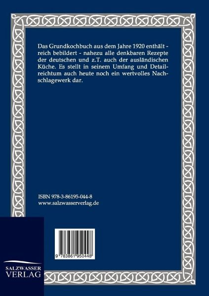 Das Grundkochbuch aus dem Jahre 1920 enthält - reich bebildert - nahezu alle denkbaren Rezepte der deutschen und z.T. auch der ausländischen Küche. Es stellt in seinem Umfang und Detailreichtum auch heute noch ein wertvolles Nachschlagewerk dar.