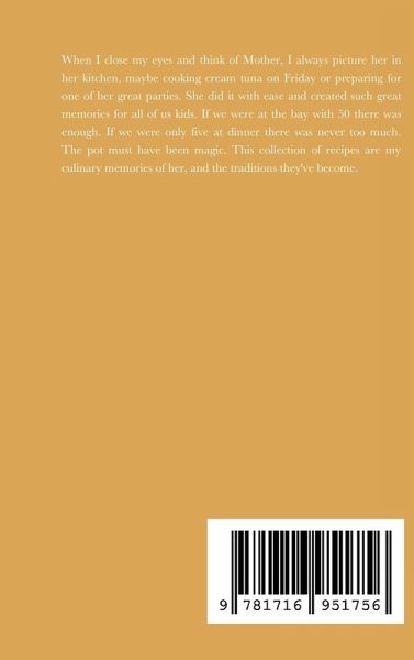 When I close my eyes and think of Mother, I always picture her in her kitchen, maybe cooking cream tuna on Friday or preparing for one of her great parties. She did it with ease and created such great memories for all of us kids. If we were at the bay with 50 there was enough. If we were only five at dinner there was never too much. The pot must have been magic. This collection of recipes are my culinary memories of her, and the traditions they've become.
