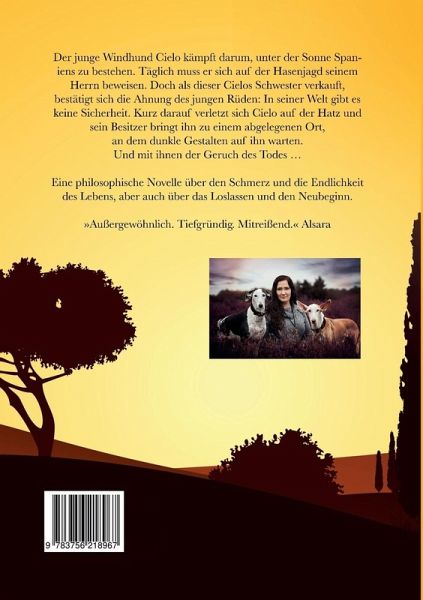 Der junge Windhund Cielo kämpft darum, unter der Sonne Spaniens zu bestehen. Täglich muss er sich auf der Hasenjagd seinem Herrn beweisen. Doch als dieser Cielos Schwester verkauft, bestätigt sich die Ahnung des jungen Rüden: In seiner Welt gibt es keine Sicherheit. Kurz darauf verletzt sich Cielo auf der Hatz und sein Besitzer bringt ihn zu einem abgelegenen Ort, an dem dunkle Gestalten auf ihn warten.Und mit ihnen der Geruch des Todes ...Eine philosophische Novelle über den Schmerz und die Endlichkeit des Lebens, aber auch über das Loslassen und den Neubeginn."Außergewöhnlich. Tiefgründig. Mitreißend." Alsara