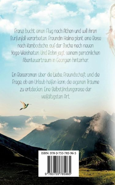 Franzi bucht einen Flug nach Athen und will ihren Surfunfall verarbeiten. Freundin Halina plant eine Reise nach Kambodscha, auf der Suche nach neuen Yoga-Weisheiten. Und Robin jagt seinem persönlichen Abenteuertraum in Georgien hinterher. Ein Reiseroman über die Liebe, Freundschaft und die Frage, ob eine Reise helfen kann, die eigenen Träume zu entdecken. Eine Selbstfindungsreise der vielfältigsten Art.Leserstimmen: Bunt wie das Leben, ehrlich und authentisch.Die Reiseziele sind so exakt beschrieben, dass man glaubt, man sieht eine Reisedoku auf 3sat.