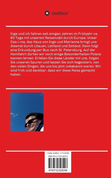 Marianne und Inge, zwei Seniorenmädels im besten Rentenalter, machen in jedem Frühjahr eine ca. 80-tägige Reise mit ihrem Reisemobil. Diesmal geht es mit der Fähre von Rügen nach Litauen, dann durch die drei baltischen Länder Litauen, Lettland und Estland. In Tallinn bleibt das Reisemobil fünf Tage stehen. Von dort aus geht der privat gebuchte Bus nach St. Petersburg. Hier sind die Führungen selbst ausgewählt und bei der Agentur "Petersburg hautnah" gebucht. Erlebnisse, die unter die Haut gehen, werden ausführlich berichtet. Die Rückfahrt mit dem Reisemobil durch Estland, Lettland und Litauen bringt sie u.a. zum "Baltischen Weg", der die Menschenkette durch die Länder dokumentiert. Sie lernen Menschen, Städte und Dörfer kennen, erleben Geschichte real, und sie erfreuen sich an vielen bisher unbekannten Besonderheiten. Die Campingplätze sind größtenteils sehr gut und gepflegt. Die alten Hansestädte bieten großartige Kultur und viele Weltkulturerbe. Die beiden Damen haben ca. 6000 km durch die drei Länder gefahren, den geografischen Mittelpunkt Europas erlebt, und sie sind sehr dankbar und auch sehr beeindruckt von dem, was sie sehen und erleben durften. Der Leser kann sie auf dieser Reise gern " begleiten", um einen ersten Eindruck zu gewinnen. Das Buch will kein Reiseführer sein, es will Eindrücke und Erlebnisse wiedergeben, um die Leser vielleicht selbst zu einer Entdeckungsreise zu ermuntern. Für alle Leser, die doch mit Bedenken auf die baltischen Länder reagieren, möchten Marianne und Inge klar machen, dass sie sich sehr wohl und auch sehr sicher gefühlt haben. Ein wunderschönes Erlebnis, an das sie gern zurück denken.