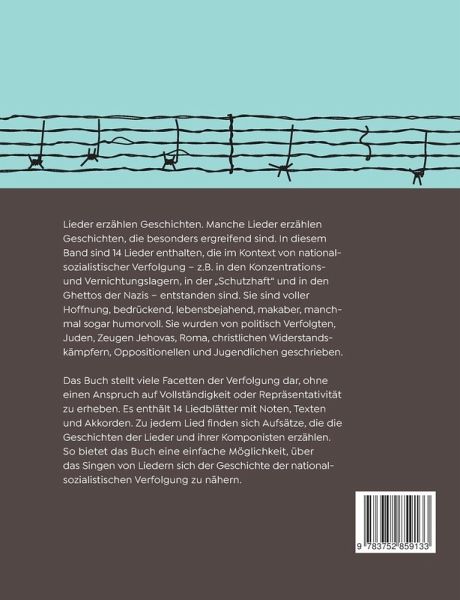 Lieder erzählen Geschichten. Manche Lieder erzählen Geschichten, die besonders ergreifend sind. In diesem Band sind 14 Lieder enthalten, die im Kontext von nationalsozialistischer Verfolgung - z.B. in den Konzentrations- und Vernichtungslagern, in der "Schutzhaft" und in den Ghettos der Nazis - entstanden sind. Sie sind voller Hoffnung, bedrückend, lebensbejahend, makaber, manchmal sogar humorvoll. Sie wurden von politisch Verfolgten, Juden, Zeugen Jehovas, Roma, christlichen Widerstandskämpfern, Oppositionellen und Jugendlichen geschrieben.Das Buch stellt viele Facetten der Verfolgung dar, ohne einen Anspruch auf Vollständigkeit oder Repräsentativität zu erheben. Es enthält vierzehn Liedblätter mit Noten, Texten und Akkorden. Zu jedem Lied finden sich Aufsätze, die die Geschichten der Lieder und ihrer Komponisten erzählen. So bietet das Buch eine einfache Möglichkeit, über das Singen von Liedern sich der Geschichte der nationalsozialistischen Verfolgung zu nähern.