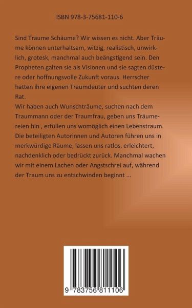 Unter dem Titel "Träumereien" sind in dieser Anthologie sowohl erlebte als auch fiktive Träume ebenso wie Tagträume und Träumereien zusammengefasst. Träumen ist Erleben während des Schlafes. Während der Körper sich weitgehend in Ruhe befindet, kann der oder die Träumende doch bewegte Szenen erleben. Ein Traum ist somit eine psychische Aktivität, die unser Gehirn ausführt, wenn wir schlafen. Nach dem Erwachen kann man sich zumindest in einem gewissen Umfang daran erinnern.Träume, die Angst auslösen oder erschrecken, kennen wir als Albträume. Fantasiebilder und Vorstellungen, die man im wachen…mehr