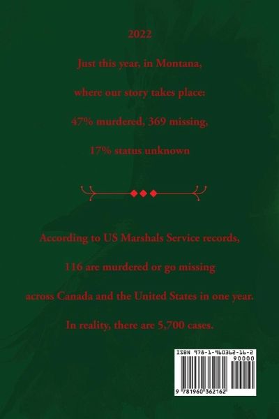 2022 Just this year, in Montana, where our story takes place: 47% murdered, 369 missing, 17% status unknown According to US Marshals Service records, 116 are murdered or go missing across Canada and the United States in one year. In reality, there are 5,700 cases.