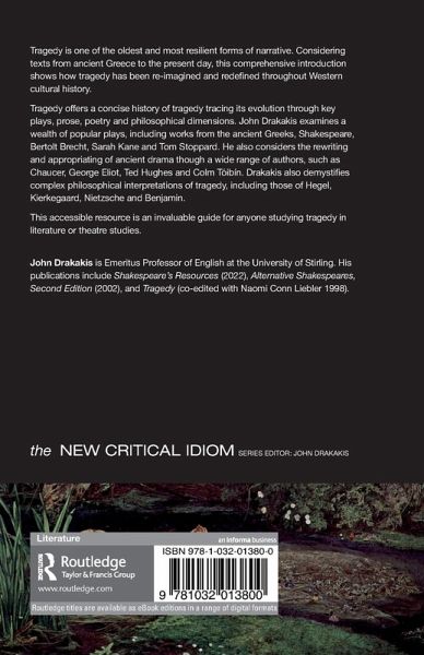 Tragedy offers a concise history of tragedy tracing its evolution through key plays, prose, poetry and philosophical dimensions. John Drakakis examines a wealth of popular plays, including works from the ancient Greeks, Shakespeare, Bertolt Brecht, Sarah Kane and Tom Stoppard. He also considers the rewriting and appropriating of ancient drama though a wide range of authors, such as Chaucer, George Eliot, Ted Hughes and Colm Tóibín. Drakakis also demystifies complex philosophical interpretations of tragedy, including those of Hegel, Kierkegaard, Nietzsche and Benjamin.