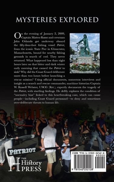 On the evening of January 2, 2009, Captain Matteo Russo and crewman John Orlando got underway aboard the fifty-four-foot fishing vessel Patriot, from the iconic State Pier in Gloucester, Massachusetts, bound for nearby fishing grounds in search of cod. They never returned. What happened less than eight hours later on that bitter and dark winter early morning that caused the Patriot to sink? Why did the Coast Guard deliberate more than two hours before launching a rescue mission? Using official documents, numerous interviews and insight as a search and rescue commander, maritime historian Captain W. Russell Webster, USCG (Ret.), expertly documents the tragedy of the Patriot, with startling findings. He deftly explores the condition of normalcy bias linked to this heartbreaking case, which can cause people--including Coast Guard personnel--to deny and sometimes over-deliberate threats to human life.