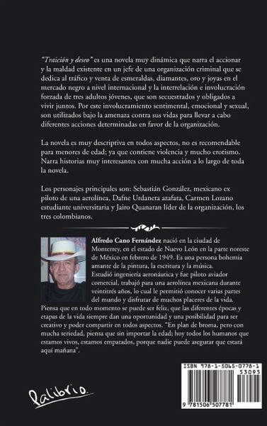 "Traición y deseo" es una novela muy dinámica que narra el accionar y la maldad existente en un jefe de una organización criminal que se dedica al tráfico y venta de esmeraldas, diamantes, oro y joyas en el mercado negro a nivel internacional y la interrelación e involucración forzada de tres adultos jóvenes, que son secuestrados y obligados a vivir juntos. Por este involucramiento sentimental, emocional y sexual, son utilizados bajo la amenaza contra sus vidas para llevar a cabo diferentes acciones determinadas en favor de la organización. La novela es muy descriptiva en todos aspectos, no es recomendable para menores de edad; ya que contiene violencia y mucho erotismo. Narra historias muy interesantes con mucha acción a lo largo de toda la novela. Los personajes principales son: Sebastián González, mexicano ex piloto de una aerolínea, Dafne Urdaneta azafata, Carmen Lozano estudiante universitaria y Jairo Quanaran líder de la organización, los tres colombianos.