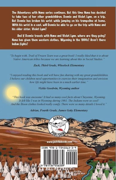 The Adventures with Nana series continues. But this time Nana has decided to take two of her other grandchildren on a trip. But Donnie has broken his wrist while jumping on his trampoline at home. With his wrist in a cast, will Donnie be able to go on the trip with Nana and his older sister, Violet Lynn? And if Donnie travels with Nana and Violet Lynn, where are they going? Nana has given them western clothes. Wyoming in the 1800s? Aren't there Indian fights?