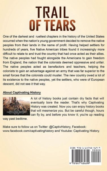 Explore the Cruel History of the Trail of Tears One of the darkest and cruelest chapters in the history of the United States occurred when the nation’s young government decided to remove the native peoples from their lands in the name of profit. Having helped settlers for hundreds of years, five Native American tribes found it increasingly more difficult to relate to and trust the country that had once acted as their allies. The native peoples had fought alongside the Americans to gain freedom from England, the nation that the colonists deemed oppressive and unfair. The native peoples acted as benefactors and teachers, helping the colonists to gain an advantage against an army that was far superior to the small forces that the colonists could muster. The new country owed a lot of its existence to the native peoples, yet the settlers, who were of European descent, did not see it that way. The following topics will be covered in this book: The Early Relationship The Growth of Manifest Destiny The Discovery of Gold and the Indian Removal Act Peaceful Protests and a Push for Recognition The People Versus the President The Militia Force Removal The Trail of Tears Stories of Pain, Loss, and Love Making a New Home And a Great Deal More You Don't Want to Miss Out On! Get the book now to learn more about the Trail of Tears!
