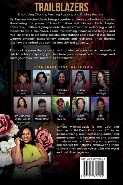Dive into the compelling pages of "Trailblazers: Embracing Change, Pursuing Purpose, and Finding Success," where Dr. Tamara Mitchell-Davis brings together a riveting collection of stories that epitomize the power of transformation and triumph. Each chapter offers a raw, unfiltered glimpse into the lives of women who redefine what it means to be a trailblazer. From navigating financial challenges and mid-life crises to overcoming personal loss and breaking through societal expectations, these women exhibit extraordinary courage and resilience. Their journeys, though distinct, are woven together by a shared spirit of tenacity and audacity, compelling each to rise stronger and more determined to push forward. Let the experiences of these remarkable women inspire you to navigate life's complexities with grace and boldness. "Trailblazers" is more than a testament to what women can achieve; it's a call to action-igniting your passion to chase your dreams with unwavering courage and to carve your own path as a trailblazer. Embark on this transformative journey and turn your dreams into reality.