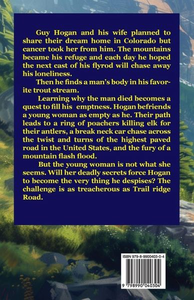 Guy Hogan and his wife planned to share their dream home in Colorado but cancer his took her from him. The mountains became his refuge and each day he hoped the next cast of his flyrod will chase away his loneliness. Then he finds a man's body in his favorite trout stream. Learning why the man died becomes a quest to fill his emptiness. Hogan befriends a young woman as empty as he. Their path leads to a ring of poachers killing elk for their antlers, a break neck car chase across the twist and turns of the highest paved road in the United States, and the fury of a mountain flash flood. But the young woman is not what she seems. Will her deadly secrets force Hogan to become the very thing he despises? The challenge is as treacherous as Trail ridge Road.
