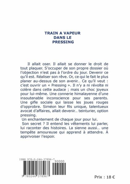 Siméon, talentueux avocat des affaires va oser réaliser son rêve d'enfant. Ouvrir un pressing. Une connerie himalayenne d'une insoutenable inconscience pour ses parents. Pour lui, un enchantement de chaque jour. Son secret? Il entend les vêtements lui parler, lui raconter des histoires. La sienne aussi... Une tempête amoureuse qui apprend à attendre. À apprivoiser l'espoir.