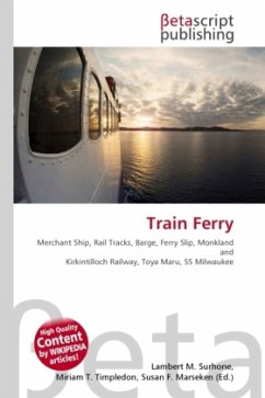 High Quality Content by WIKIPEDIA articles! A train ferry is a ship designed to carry railway vehicles. Typically, one level of the ship is fitted with railway tracks, and the vessel has a door at the front and/or rear to give access to the wharves. In the United States, train ferries are referred to as "car ferries". The wharf (sometimes called a "slip") has a ramp, linkspan or "apron", balanced by weights, that connects the railway proper to the ship, allowing for the water level to rise and fall with the tides. For an example of a specialized slip to receive railcars see ferry slip.