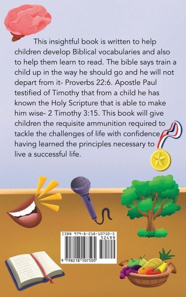 This insightful book is written to help children develop Biblical vocabularies and also to help them learn to read. The Bible says train a child up in the way he should go and he will not depart from it- Proverbs 22:6. Apostle Paul testified of Timothy that from a child he has known the Holy Scripture that is able to make him wise- 2 Timothy 3:15. This book will give children the requisite ammunition required to tackle the challenges of life with confidence having learned the principles necessary to live a successful life.