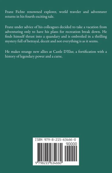 Franz Fichte renowned explorer, world traveler and adventurer returns in his fourth exciting tale. Franz under advice of his colleagues decided to take a vacation from adventuring only to have his plans for recreation break down. He finds himself thrust into a quandary and is embroiled in a thrilling mystery full of betrayal, deceit and not everything is as it seems. Franz makes strange new allies at Castle D'Elur, a fortification with a history of legendary power and a curse.