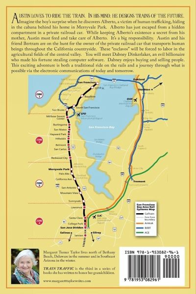 Austin loves to ride the train. In his mind, he designs trains of the future. Imagine the boy's surprise when he discovers Alberto, a victim of human trafficking, hiding in the cabana behind his home in Merryvale Park. Alberto has just escaped from a hidden compartment in a private railroad car. While keeping Alberto's existence a secret from his mother, Austin must feed and take care of Alberto. It's a big responsibility. Austin and his friend Bertram are on the hunt for the owner of the private railroad car that transports human beings throughout the California countryside. These "esclavos" will be forced to labor in the agricultural fields of the central valley. You will meet Dabney Dinkerlaker, an evil billionaire who made his fortune stealing computer software. Dabney enjoys buying and selling people. This exciting adventure is both a traditional ride on the rails and a journey through what is possible via the electronic communications of today and tomorrow.
