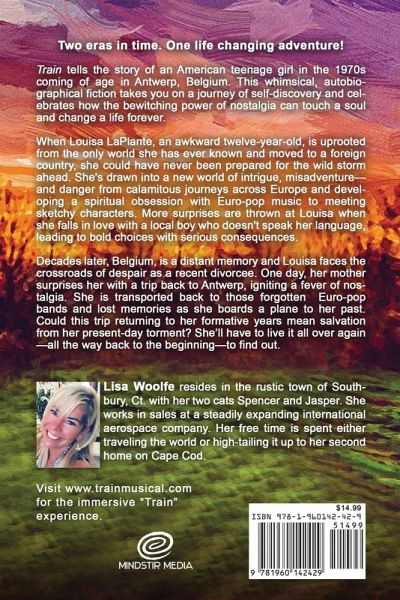 Train tells the story of an American teenage girl coming of age living in Antwerp, Belgium with her family during the 1970s. This whimsical autobiographical fiction takes you on a journey of self-discovery and celebrates how the bewitching power of nostalgia can touch a soul and change a life forever. When Louisa LaPlante, an awkward twelve-year-old, is uprooted from the only world she has known to a foreign country, she could never have been prepared for the wild storm that was ahead. She's drawn into a new world of intrigue, misadventure - and danger. From calamitous journeys throughout Europe, developing a spiritual obsession with the Euro-pop music to meeting sketchy characters. And more surprises are thrown at her when she falls in love with a local boy who doesn't speak her language, leading to bold choices with serious consequences. Decades later, Belgium is a distant memory and Louisa faces the crossroads of despair as a recent divorcee. But one day, her mother surprises her with a trip back to Antwerp, igniting a fever of nostalgia. She is transported back to those forgotten Euro-pop bands and lost memories as she heads on a plane to her past. Could this trip returning to her formative years be the salvation to her present-day torment? She'll have to live it all over again- all the way back to the beginning- to find out.