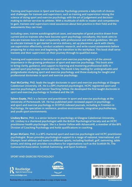 Training and Supervision in Sport and Exercise Psychology presents a labyrinth of choices and challenges for trainees and supervisors, such as training and supervision mixing the science of doing sport and exercise psychology with the art of judgement and decision-making to deliver services to athletes. With a multitude of skills to master and competencies to gain, trainees and supervisors need assurances about best practice in their field and the assessments they can trust.