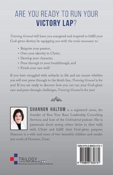 Are you ready to run your victory lap? Training Ground will leave you energized and inspired to fulfill your God-given destiny by equipping you with the tools necessary to: Reignite your passion, Own your identity in Christ, Develop your character, Press through to your breakthrough, and Finish your race well! If you have struggled with setbacks in life and are unsure whether you will ever press through to the finish line, Training Ground is for you! If you are ready to discover how you can run your God-given race and press through challenges, Training Ground is for you!