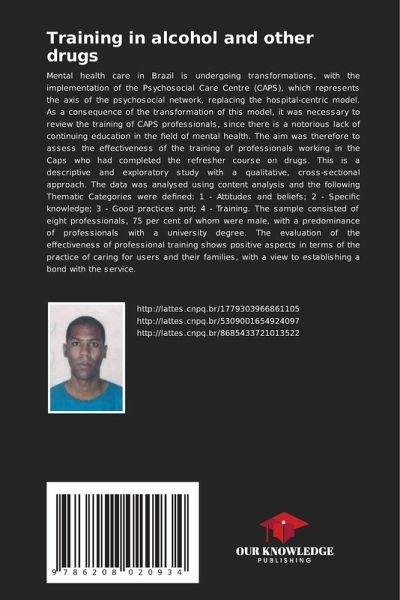 Mental health care in Brazil is undergoing transformations, with the implementation of the Psychosocial Care Centre (CAPS), which represents the axis of the psychosocial network, replacing the hospital-centric model. As a consequence of the transformation of this model, it was necessary to review the training of CAPS professionals, since there is a notorious lack of continuing education in the field of mental health. The aim was therefore to assess the effectiveness of the training of professionals working in the Caps who had completed the refresher course on drugs. This is a descriptive and exploratory study with a qualitative, cross-sectional approach. The data was analysed using content analysis and the following Thematic Categories were defined: 1 - Attitudes and beliefs; 2 - Specific knowledge; 3 - Good practices and; 4 - Training. The sample consisted of eight professionals, 75 per cent of whom were male, with a predominance of professionals with a university degree. The evaluation of the effectiveness of professional training shows positive aspects in terms of the practice of caring for users and their families, with a view to establishing a bond with the service.