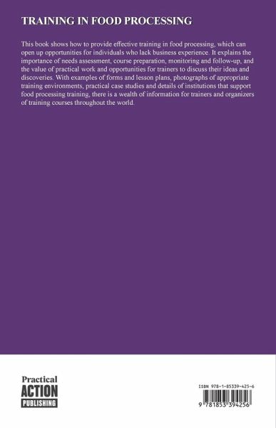 This book shows how to provide effective training in food processing, which can open up opportunities for individuals who lack business experience. It explains the importance of needs assessment, course preparation, monitoring and follow-up, and the value of practical work and opportunities for trainers to discuss their ideas and discoveries.