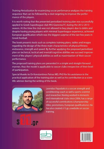 Training Periodization for maximizing soccer performance analyzes the training sequence that can be followed by a club targeting to improve the performance of the players. It is worth noting that the presented periodized training plan was successfully applied to the Greek Superleague club PAS Giannina FC during the 2012-2013 season. At the time the club was not allowed to buy players due to debts and despite having young players with minimal Superleague experience, achieved European qualification which was the biggest surprise of the last few years in Greek football. The book presents tools such as complete training plans, tables, and images regarding the design of the three main characteristics of physical fitness: endurance, strength, and speed. By further applying the proposed periodized plan on technical, tactical and mental/cognitive abilities we succeed improvement of the players' physical abilities as well as maximization of their soccer performance. The proposed training plans are presented in a simple and straight-forward manner, thus the model is applicable to soccer clubs irrespective of their level of participation. Special thanks to Dr. Konstantinos Patras MD, Ph.D. for his assistance in the practical application of the training plan as well as his contribution as a scientific advisor during the writing of the book.