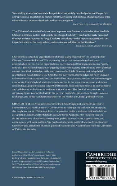Charlotte P. Lee considers organizational changes taking place within the contemporary Chinese Communist Party (CCP), examining the party's renewed emphasis on an understudied but core set of organizations: party-managed training academies or 'party schools'. This national network of organizations enables party authorities to exert political control over the knowledge, skills, and careers of officials. Drawing on in-depth field research and novel datasets, Lee finds that the party school system has not been immune to broader market-based reforms but instead has incorporated many of the same strategies as actors in China's hybrid, state-led private sector. In the search for revenue and status, schools have updated training content and become more entrepreneurial as they compete and collaborate with domestic and international actors. This book draws attention to surprising dynamism located within the party, in political organizations thought immune to change, and the transformative effect of the market on China's political system.