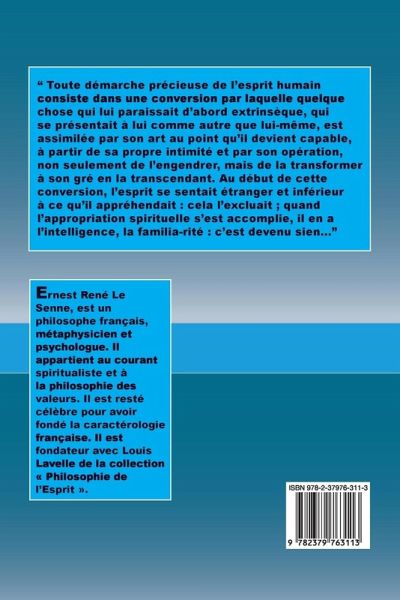 " Si l'un objectif était la fin de nos visées, on ne pourrait que n'y pas être ou y être, car cet un exclut le degré, comme le point est sans parties. Entre la mort dans l'un et l'anéantissement hors de l'un, il n'y aurait pas de vie. Je suis et vis. En tant que j'existe, je dois participer de l'un ; en tant que je désire n'y réussir qu'en partie, je ne dois pas l'épuiser immédiatement ni jamais. Donc l'un comporte la multiplicité du degré, comme tout autre ; et, puisque l'un d'un moi est le seul à permettre une multiplicité en soi, l'un suprême est une personne et doit être appelé Dieu..."