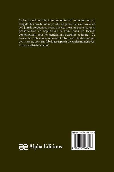 Traité élémentaire de chimie (Tome 2); Présenté dans un ordre nouveau et d'après les découvertes modernes; avec Figures, un livre classique, a été considéré comme important tout au long de l'histoire de l'humanité, et pour que cet ouvrage ne soit jamais oublié, chez Alpha Editions, nous avons fait des efforts pour sa préservation en rééditant ce livre dans un format moderne pour les générations présentes et futures. Tout ce livre a été reformaté, retapé et conçu. Ces livres ne sont pas constitués de copies numérisées de leur ¿uvre originale et le texte est donc clair et lisible.