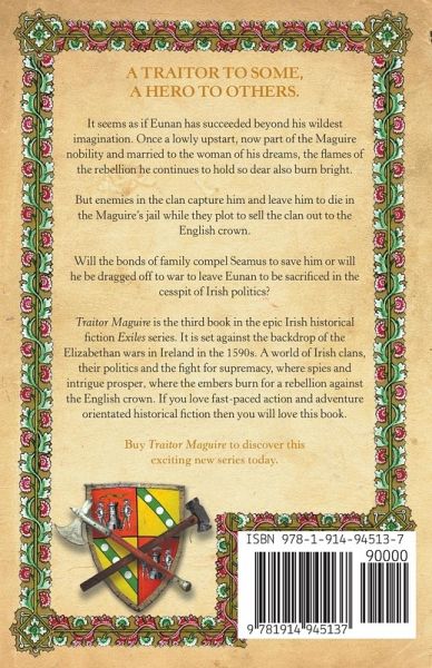 ¿¿¿¿ "A must read addition to the Exiles series that leaves you wanting more," "has to be the most exciting of the books so far," - Reedsy Discovery A traitor to some, a hero to others. It seems as if Eunan has succeeded beyond his wildest imagination. Once a lowly upstart, now part of the Maguire nobility and married to the woman of his dreams, the flames of the rebellion he continues to hold so dear also burn bright. But enemies in the clan capture him and leave him to die in the Maguire's jail while they plot to sell the clan out to the English crown. Will the bonds of family compel Seamus to save him or will he be dragged off to war to leave Eunan to be sacrificed in the cesspit of Irish politics? Traitor Maguire is the third book in the epic Irish historical fiction Exiles series. It is set against the backdrop of the Elizabethan wars in Ireland in the 1590s. A world of Irish clans, their politics and the fight for supremacy, where spies and intrigue prosper, where the embers burn for a rebellion against the English crown. If you love fast-paced action and adventure orientated historical fiction then you will love this book.