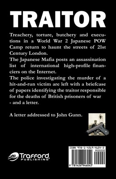 The betrayal of his fellow prisoners by a British officer in a Japanese POW camp in Hong Kong in 1941 returns to haunt the 21st Century on the streets of London. The son of one of the POWs has been murdered by a hit-and-run driver to prevent him from finding the traitor who condemmed 1,200 men to die, locked in the hold of a sinking ship while being transported as slave labour toJapan. The hit-and-run victim leaves behind a briefcase containing his research into the identity of the traitor......and a letter. A letter adressed to John Gunn, an agent in the British Intelligence Directorate. This forcess John Gunn into a deadly conflict, not only with the Japanese, Albanian and Russian Mafias, but also with his own Direcdtorate.