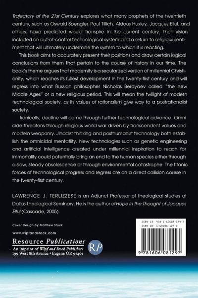 Trajectory of the Twenty-first Century explores what many prophets of the twentieth century, such as Oswald Spengler, Paul Tillich, Aldous Huxley, Jacques Ellul, and others, have predicted would transpire in the current century. Their vision included an out-of-control technological system and a return to religious sentiment that will ultimately undermine the system to which it is reacting. This book aims to accurately present their positions and draw certain logical conclusions from them that pertain to the course of history in our time. The book's theme argues that modernity is a secularized version of millennial Christianity, which reaches its fullest development in the twenty-first century and will regress into what Russian philosopher Nicholas Berdyaev called ""the new Middle Ages"" or a new religious period. This will mean the twilight of modern technological society, as its values of rationalism give way to a postrationalist society. Ironically, decline will come through further technological advance. Omnicide threatens through religious world war driven by transcendent values and modern weaponry. Jihadist thinking and posthumanist technology both establish the omnicidal mentatlity. New technologies such as genetic engineering and artificial intelligence created under millennial inspiration to reach for immortality could potentially bring an end to the human species either through a slow, steady obsolescence or through environmental catastrophe. The titanic forces of technological progress and regress are on a direct collision course in the twenty-first century.