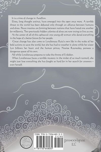 It is a time of change in Asrellion. Elves, long thought extinct, have emerged into the open once more. A terrible threat to the world has been defeated only through an alliance between humans and elves. Peace treaties are forming between nations that have hated one another for millennia. Two previously hidden colonies of elves are now trying to live as one. At the center of all of this upheaval: one young elf woman who dared everything in the hope of a better future for her people. Great change has also come to Loralíenasa Raia's own life in the wake of her bold actions to save the world, but she has had to weather it alone while her sister Lyn follows her heart and the human prince, Naoise Raynesley, pursues a dangerous quest of his own. All while Loralíenasa prepares to take the throne of Evlédíen. When Loralíenasa faces a terrible mystery in the midst of so much turmoil, she might just lose everything she has fought so hard for in her search for answers - even herself.