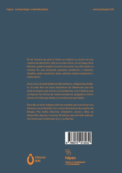 El ser humano es para sí mismo un enigma. La acción es una manera de descifrarlo. Son la vida misma y el riesgo que representa para la libertad la única manera en que el espíritu humano puede encontrar una cifra sobre su nombre. En esa búsqueda aparecen problemas y misterios. Unos, piden resolución, los otros, solicitan nuestra aceptación y recibimiento. De la mano de Gabriel Marcel, Michel Henry y Miguel García-Baró, en este libro se busca esclarecer las diferencias que hay entre el enigma que somos y los problemas y los misterios que configuran las tramas de nuestra existencia, cosida al mismo tiempo a la Vida que recibe y al mundo en el que habita. Para ello, el autor trabaja sobre los puentes que comunican a la literatura con la filosofía. Con motivo de la lectura de cuentos de Borges, Poe, Kafka, Elizondo, Chesterton, Joyce y Bloy, son desarrolladas algunas nociones filosóficas que permiten esbozar las tramas que constituyen al yo y su libertad.