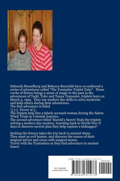 Seeking the Source takes the trio back to ancient times. They meet an evil hunter-A man that tries to claim Tyler is an angel sent from the heavens. They meet danger on their travels and encounter magical stones. Travel with the Trammlers as they find adventure in ancient times!