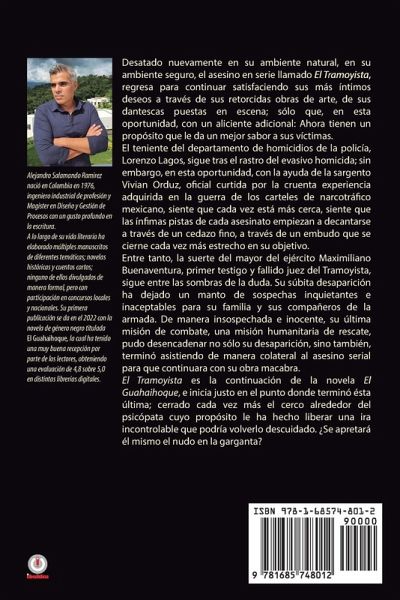 Desatado nuevamente en su ambiente natural, en su ambiente seguro, el asesino en serie llamado El Tramoyista, regresa para continuar satisfaciendo sus más íntimos deseos a través de sus retorcidas obras de arte, de sus dantescas puestas en escena; sólo que, en esta oportunidad, con un aliciente adicional: Ahora tienen un propósito que le da un mejor sabor a sus víctimas. El teniente del departamento de homicidios de la policía, Lorenzo Lagos, sigue tras el rastro del evasivo homicida; sin embargo, en esta oportunidad, con la ayuda de la sargento Vivian Orduz, oficial curtida por la cruenta experiencia adquirida en la guerra de los carteles de narcotráfico mexicano, siente que cada vez está más cerca, siente que las ínfimas pistas de cada asesinato empiezan a decantarse a través de un cedazo no, a través de un embudo que se cierne cada vez más estrecho en su objetivo. Entre tanto, la suerte del mayor del ejército Maximiliano Buenaventura, primer testigo y fallido juez del Tramoyista, sigue entre las sombras de la duda. Su súbita desaparición ha dejado un manto de sospechas inquietantes e inaceptables para su familia y sus compañeros de la armada. De manera insospechada e inocente, su última misión de combate, una misión humanitaria de rescate, pudo desencadenar no sólo su desaparición, sino también, terminó asistiendo de manera colateral al asesino serial para que continuara con su obra macabra. El Tramoyista es la continuación de la novela El Guahaihoque, e inicia justo en el punto donde terminó ésta última; cerrado cada vez más el cerco alrededor del psicópata cuyo propósito le ha hecho liberar una ira incontrolable que podría volverlo descuidado. ¿Se apretará él mismo el nudo en la garganta?