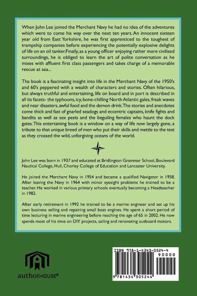 When John Lee joined the Merchant Navy he had no idea of the adventures which were to come his way over the next ten years. An innocent sixteen year old from East Yorkshire, he was first apprenticed to the toughest of trampship companies before experiencing the potentially explosive delights of life on an oil tanker.Finally, as a young officer enjoying rather more civilised surroundings, he is obliged to learn the art of polite conversation as he mixes with affluent first class passengers and takes charge of a memorable rescue at sea.... The book is a fascinating insight into life in the Merchant Navy of the 1950's and 60's peppered with a wealth of characters and stories. Often hilarious, but always truthful and entertaining, life on board and in port is described in all its facets- the typhoons, icy, bone-chilling North Atlantic gales, freak waves and near disasters, awful food and the demon drink. The stories and anecdotes come thick and fast of gnarled seadogs and eccentric captains, knife fights and bandits as well as sex pests and the beguiling females who haunt the dock gates. This entertaining book is a window on a way of life now largely gone, a tribute to that unique breed of men who put their skills and mettle to the test as they crossed the wild, unforgiving oceans of the world.