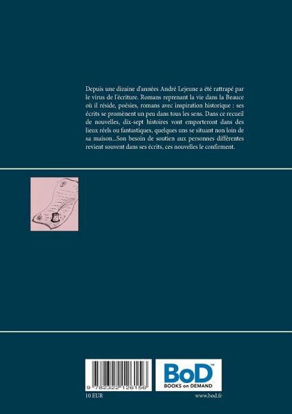 Depuis une dizaine d'années André Lejeune a été rattrapé par le virus de l'écriture. Romans reprenant la vie dans la Beauce où il réside, poésies, romans avec inspiration historique : ses écrits se promènent un peu dans tous les sens. Dans ce recueil de nouvelles, dix-sept histoires vont emporteront dans des lieux réels ou fantastiques, quelques uns se situant non loin de sa maison...Son besoin de soutien aux personnes différentes revient souvent dans ses écrits, ces nouvelles le confirment.