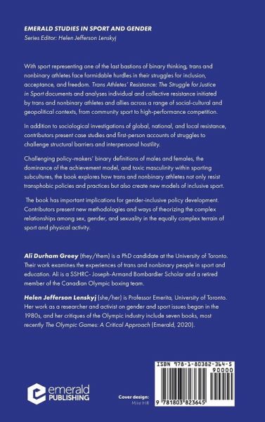 Acknowledging the formidable hurdles trans and nonbinary athletes face in their struggles for inclusion, acceptance, and freedom, this book documents and analyses their resistance across a range of social-cultural and geopolitical contexts, from community sport to high-performance competition.