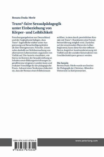 Forschungsergebnisse aus Deutschland und der Anglophonie belegen, dass Trans_-Jugendliche stärker unter Ausgrenzung und Benachteiligung leiden als ihre Altersgenossen. Forscher_innen rufen deshalb zur Sichtbarmachung von alternativen Lebensweisen zugunsten von Vielfalt auf. Die Autorin visualisiert, wie hierzu im Kontext der Sexualerziehung an Schulen sowie Bildungseinrichtungen Jugendliteratur eingesetzt werden kann und evaluiert Vorschläge für die pädagogische Praxis. Anhand eines Textkorpus diskutiert sie, dass der Roman einen Erlebnisraum eröffnet, in dem durch persönlichen Kontakt mit Trans_-Charakteren eine Fremdheitserfahrung möglich wird. Zunächst auf der emotionalen Ebene des Leibes beginnend, kann diese für eine selbstreflexive, kognitive Auseinandersetzung mit Vielfalt und der sozialen Konstruktion von Geschlechtskörpern genutzt werden.