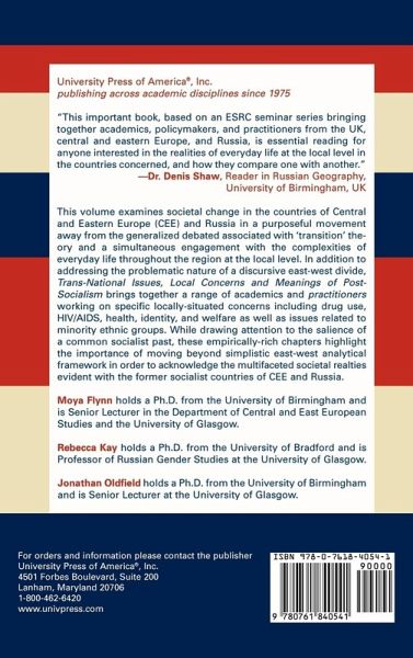 This volume examines societal change in the countries of Central and Eastern Europe (CEE) and Russia in a purposeful movement away from the generalized debated associated with 'transition' theory and a simultaneous engagement with the complexities of everyday life throughout the region at the local level. In addition to addressing the problematic nature of a discursive east-west divide, Trans-National Issues, Local Concerns and Meanings of Post-Socialism brings together a range of academics and practitioners working on specific locally-situated concerns including drug use, HIV/AIDS, health, identity, and welfare as well as issues related to minority ethnic groups. While drawing attention to the salience of a common socialist past, these empirically-rich chapters highlight the importance of moving beyond simplistic east-west analytical framework in order to acknowledge the multifaceted societal realties evident with the former socialist countries of CEE and Russia.