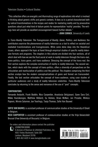 Trans-Reality Television offers an overview of contributions which engage with the phenomenon of reality television as a tool to reflect on societal and mediated transformations and transgressions. The chapters in this volume are divided into four sections, all of which deal with how we see the fluid social at work in reality television through the trans-real, trans-politics, trans-genre, and trans-audience.