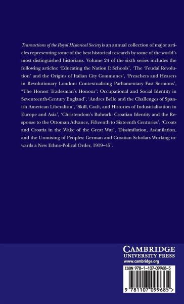 Transactions of the Royal Historical Society is an annual collection of major articles representing some of the best historical research by some of the world's most distinguished historians. This collection is Volume 24 of the sixth series.
