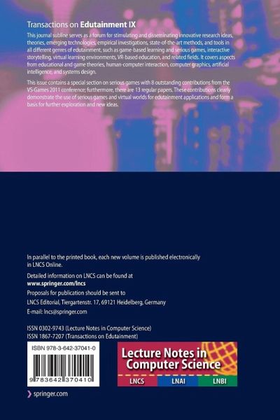 This journal subline serves as a forum for stimulating and disseminating innovative research ideas, theories, emerging technologies, empirical investigations, state-of-the-art methods, and tools in all different genres of edutainment, such as game-based learning and serious games, interactive storytelling, virtual learning environments, VR-based education, and related fields. It covers aspects from educational and game theories, human-computer interaction, computer graphics, artificial intelligence, and systems design.This issue contains a special section on serious games with 8 outstanding…mehr