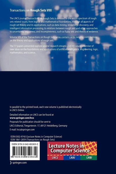 This book, which constitutes the eighth volume of the Transactions on Rough Sets series, contains a wide spectrum of contributions to the theory and applications of rough sets.